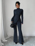 The Basira Pant Set redefines effortless elegance with its asymmetrical design and rib-knit texture. Featuring a stand collar and long sleeves, this slim-fit set blends comfort and style — perfect for a night out or a chic casual look. Crafted from medium-stretch knit fabric for a flattering fit and easy movement.