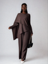 Our Women’s Two-Piece Set combines casual comfort with elegant style. This medium-stretch ensemble features a long sleeve round-neck blouse with asymmetrical, textured details, paired with long pants for a polished look.
